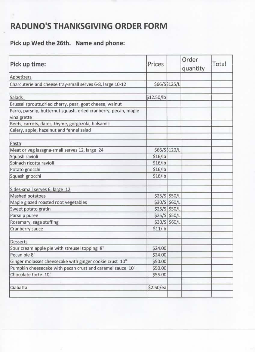 Please have a look at appetizers, salads, pastas, entrees that we offer, plus there are many more choices. Please call Janene for more information. 231-632-7916 or email j9woman@gmail.com